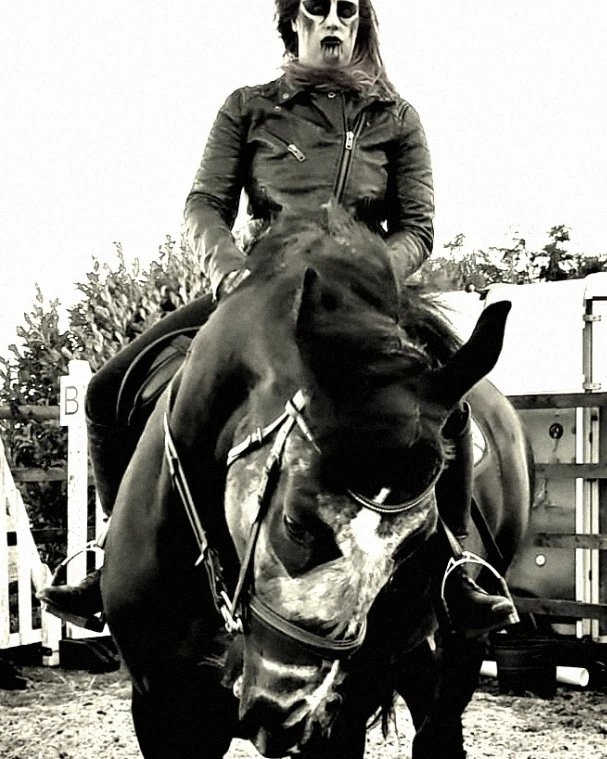 We continue with #corpsemass pics all week. Day 3 is this horse and rider series both wearing lovely corpse paint – Jen and horse model Jason*.