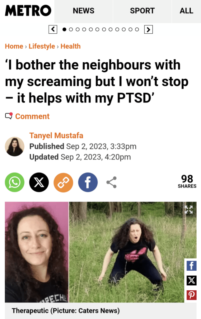 Remember this story that got featured loads in the press about how one woman (Cristina) treated her PTSD with metal screaming?