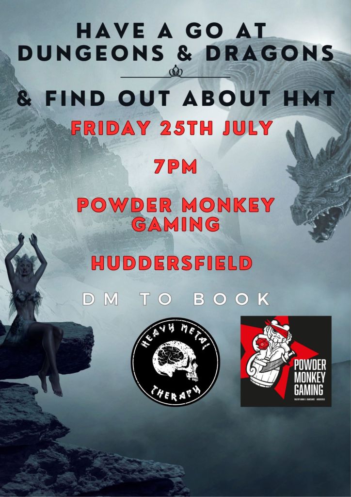 We had such a good time at the last one we’ve decided to try another Dungeons and Dragons event at Powder monkey gaming in Huddersfield. We are ably guided by Carl, no experience required. Join us on 25th July from 7. Message to book.