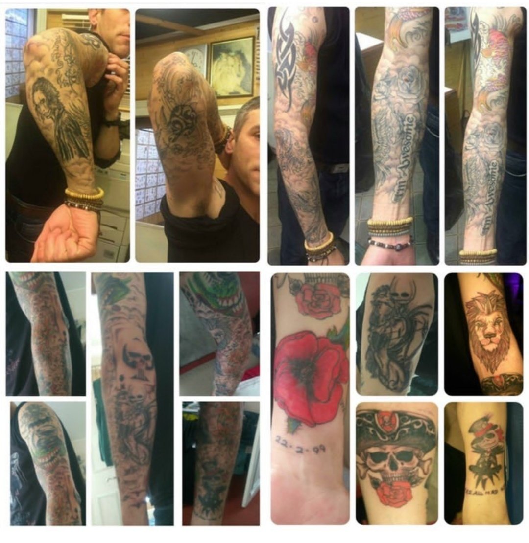 The Poppy represents The Brotherhood and I’m proud of that for what it is and the date is the day I joined the brotherhood, the clouds is my dream of flight and the waves is my natural love of water, it’s a sketchbook of my life and although I’ve had a few covered like ex girlfriends names with death lol rather appropriate I thought. I love tattoos and seeing them from initial sketch to application, how it builds up and outline done to shading to colour. Never be afraid to be yourself and design yourself the way you want to, it’s your body so paint it, sketch it or build it the way you want to.