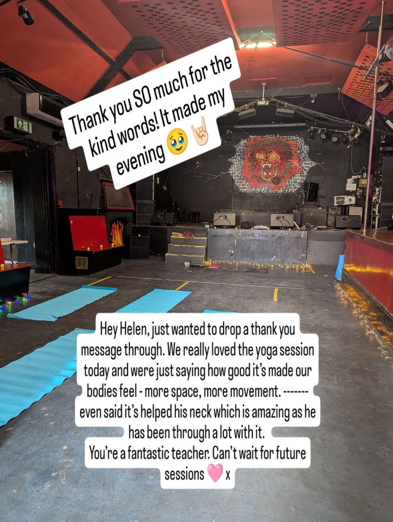 We are really grateful to the fabulous Metal Yoga folks who have started running metal yoga classes in association* with us around the country and online. We have so much interest in this now that we knew it needed a section of it’s own for the site! Anna, host of Slow Metal Flow Yoga in Bristol, shared this blog with us about the experience of attending a metal yoga class: