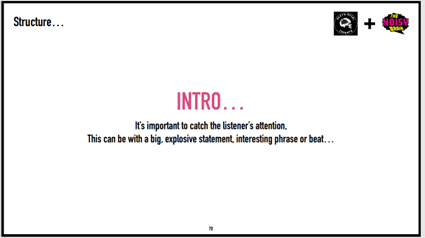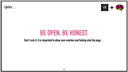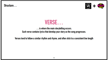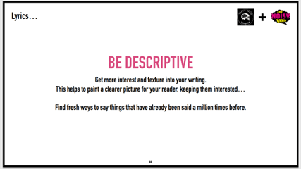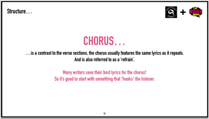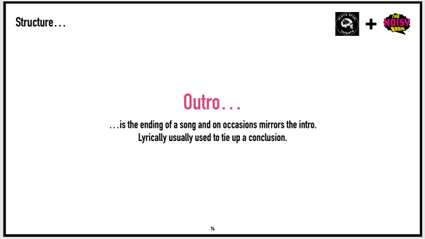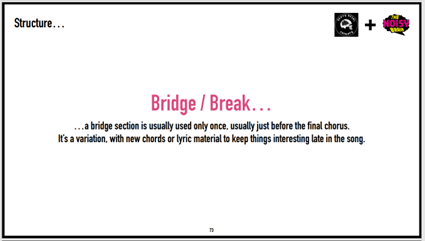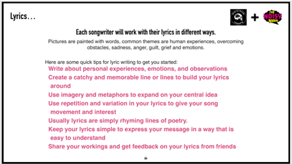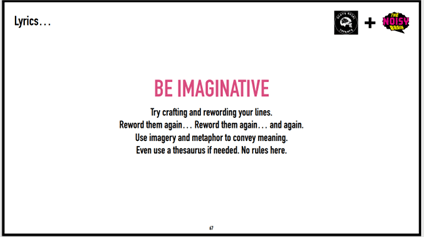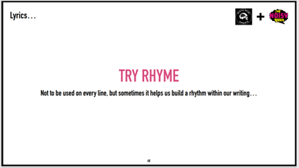 Stu from the noisy brain offers the following ideas about having a go at writing lyrics (when he says ‘break’ you could include a breakdown as in lots of metal instead, if you wished ;))