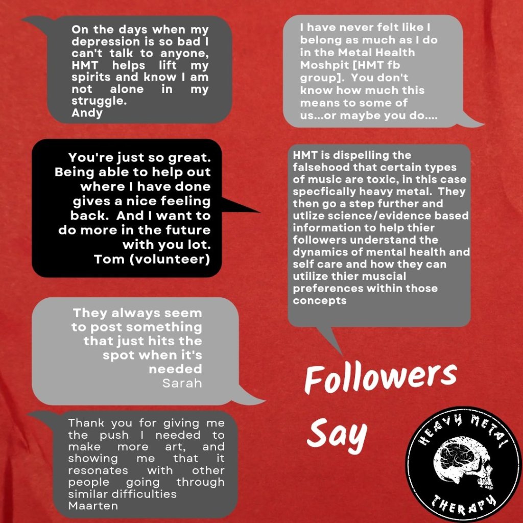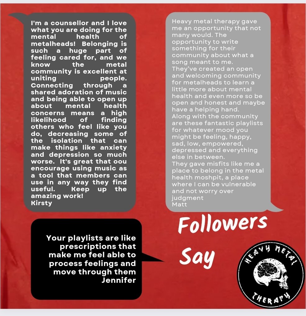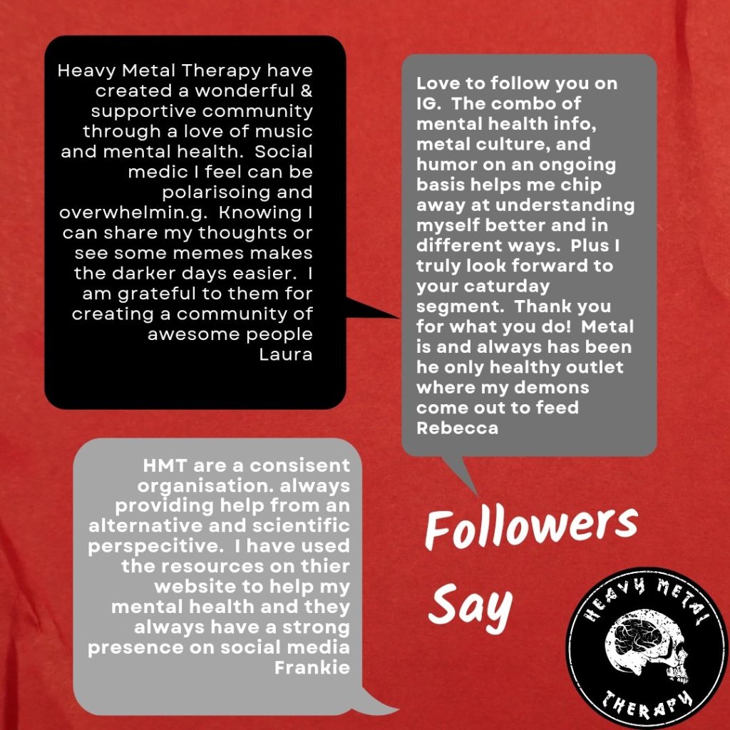 We don’t mean to brag…. But we are kind of proud of what heavy metal therapy has become (it surprised us a bit as well!). HMT is peer led, so it’s about the people that use and interact with the pages. We wanted a place where we could acknowledge the feedback that people have given us and to say thank you. We take feedback very seriously and if there’s something you don’t like, we’d rather know – that’s how we get better! Here are some of the things people have said about our project and notable mentions we’ve had: