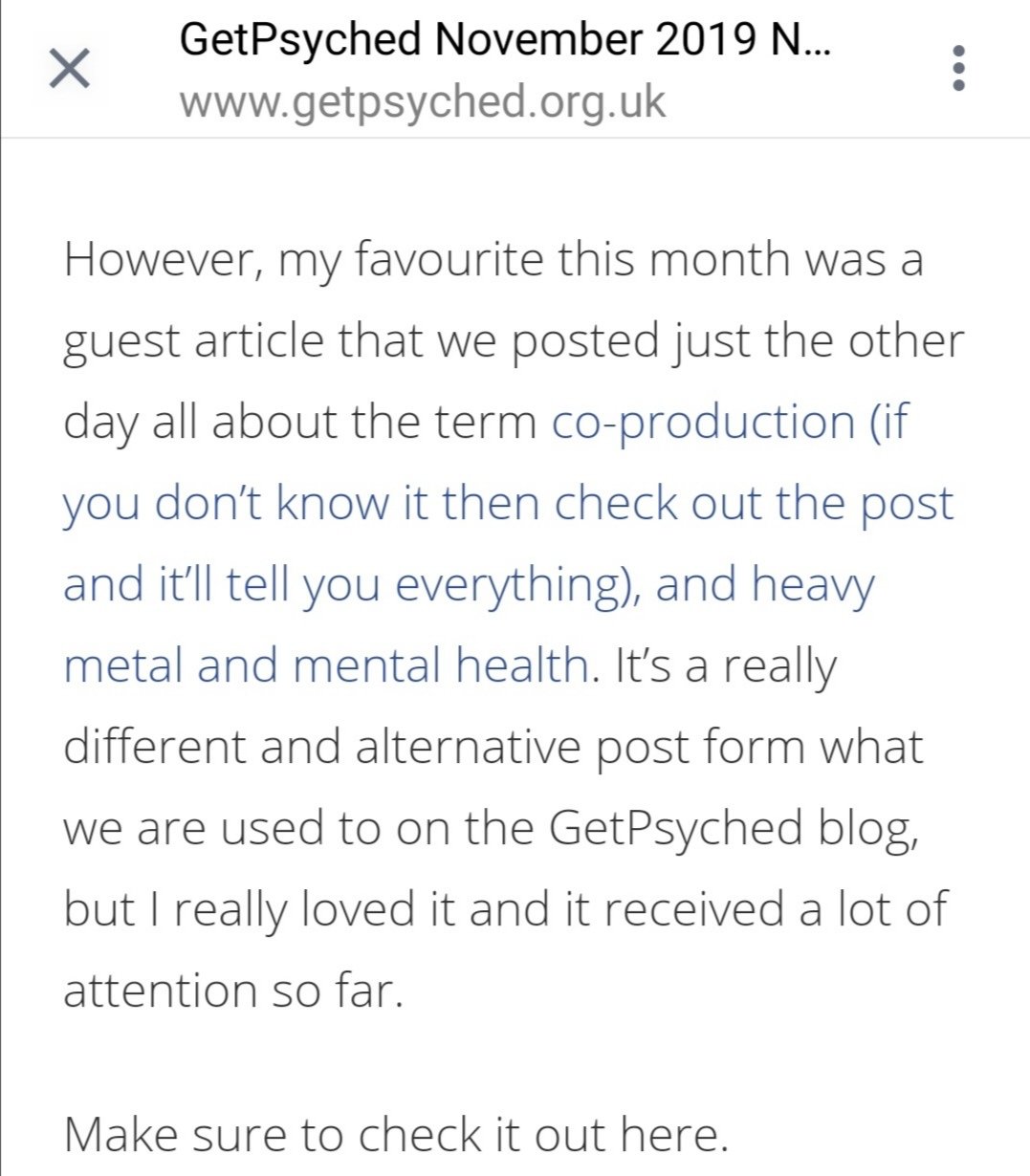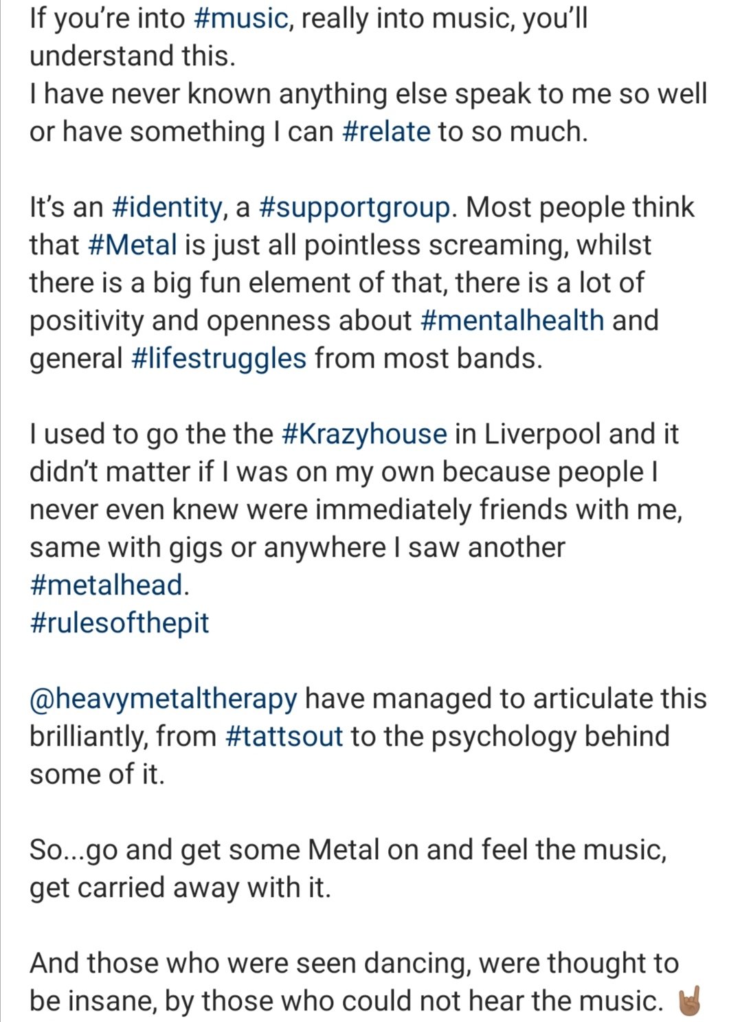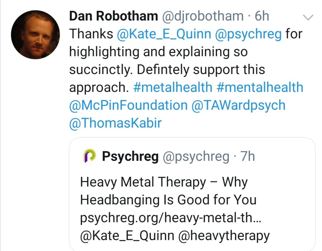 We don’t mean to brag…. But we are kind of proud of what heavy metal therapy has become (it surprised us a bit as well!). HMT is peer led, so it’s about the people that use and interact with the pages. We wanted a place where we could acknowledge the feedback that people have given us and to say thank you. We take feedback very seriously and if there’s something you don’t like, we’d rather know – that’s how we get better! Here are some of the things people have said about our project and notable mentions we’ve had: